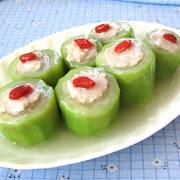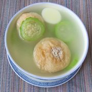 丝瓜、日本豆腐、油球、肉馅、食盐、料酒、葱花。