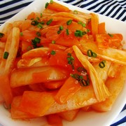 火锅年糕、大白菜帮、南瓜、植物油、番茄酱、食盐、小葱、开水。