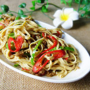 干豆腐丝、肉末、青椒、美人椒、大蒜、生姜、盐、蚝油。