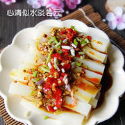 豌豆凉粉、贡菜剁椒、芝麻酱、米醋、味极鲜、香油、花椒粉、大蒜、姜、小葱。