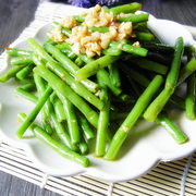 豇豆、大红浙醋、辣椒油、花椒油、大蒜、盐、香油。