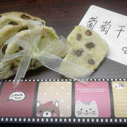 低粉、葡萄干、黄油、牛奶、鸡蛋、柠檬屑、糖粉。