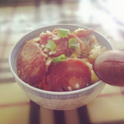 大米、土豆、胡萝卜、广味腊肠、青豆、洋葱、盐、鸡精、调和油、水。