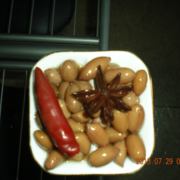 花生米、八角、桂皮、干红辣椒、料酒、生抽、香醋。
