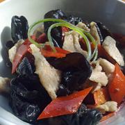黑木耳、猪瘦肉、红椒、植物油、盐。