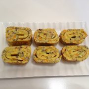 鸡蛋、胡萝卜、香菇、葱、料酒、盐。