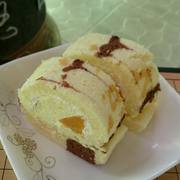 低粉、鸡蛋、玉米油、牛奶、糖、可可粉、淡奶油、糖、黄桃。