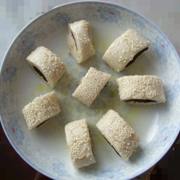 糯米粉、果酱、蜜枣、芝麻。