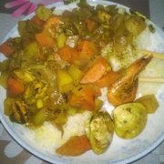 洋葱、胡萝卜、土豆、虾、花蛤、海虹蛤肉、墨鱼、尖椒、蒜。