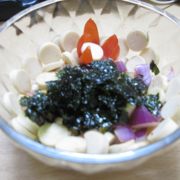 洋葱、海苔、芝麻、樱桃番茄、鸡肉肠。