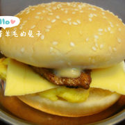 汉堡面包、鸡蛋、猪排、芝士、千岛酱、盐、酱油、白糖、烧烤汁、生粉。
