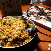 冷饭、火腿厚片、鹅肉、鸡蛋、蒜头、香葱、盐、酱油、腐乳。