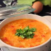 西红柿、鸡蛋、面粉、香菜、水、葱花、盐、香油、糖。