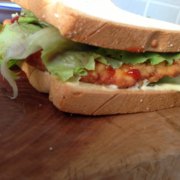 鸡脯肉、面包片、生菜叶、面粉、鸡蛋、盐、胡椒粉、糖、五香粉、孜然。