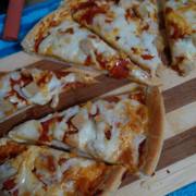 坯子、鸡肉片、批萨酱、黄油、奶酪碎。