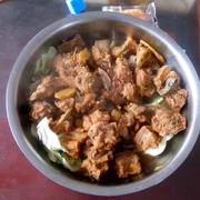排骨、甘蓝、甜面酱、酱油、花椒、八角、香叶、葱、姜、盐、油。