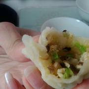 瘦猪肉、明虾、香菜、葱、鸡蛋、淀粉、料酒、鸡精、姜粉、胡椒粉、青菜叶、黄瓜、香油。