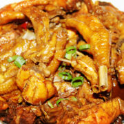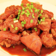 带皮猪五花肉、八角、姜、葱、烧焖酱汁、白酒。