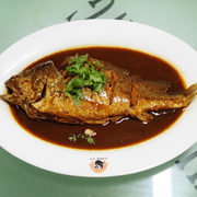 黄花鱼、五花肉、姜、蒜、葱、烧焖酱汁、香菜、米醋。