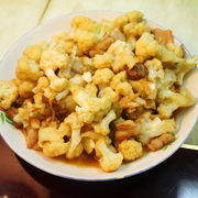 菜花、五花肉、姜片、葱、蒜片、大厨四宝烧焖酱汁。