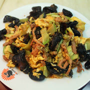 木耳、猪里脊肉、鸡蛋、黄瓜、姜、葱。