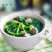 苋菜、牛肉丸、生姜、蒜、盐、油。