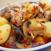 蘑菇、土豆、鸡块、青花椒、干辣椒、豆瓣酱、姜、蒜、盐。