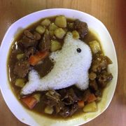 鸡肉、土豆、胡萝卜、白米饭、葱、姜、蒜、咖喱块、酱油、料酒、盐。