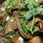 红烧肉、笋干、花菇、鹌鹑蛋、枸杞、大枣、姜片、香葱、香菜、酱油、八角、香叶、桂皮。
