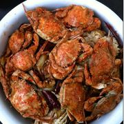 小花盖蟹、干辣椒、姜、葱、白酒或料酒、老抽、生抽、白糖、色拉油、白开水。