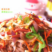 鲜面条、洋葱、胡萝卜、火腿肠、菜椒、土鸡蛋、葱花、油、盐、五香粉、蚝油、生抽、鸡精。