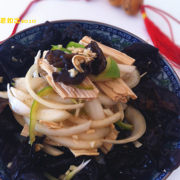 木耳、洋葱、腐竹、青椒、大蒜、芝麻油、米醋、盐、生抽、鸡精。