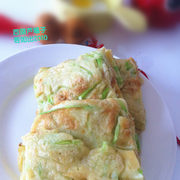 荀瓜、鸡蛋、面粉、水、花生油、芝麻油、花椒粉、胡椒粉、盐、生抽。