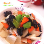 山药、青椒、胡萝卜、木耳、大蒜、花生油、盐、鸡精、白糖、盐。