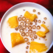 芒果、西米、蜂蜜、牛奶。