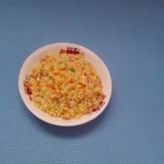 隔夜米饭、胡萝卜香葱、肉花肠、香葱、鸡蛋、香葱、盐、味精。