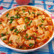 豆腐、瘦猪肉、葱、姜、蒜、小葱、豆瓣酱、盐、麻椒、生粉、干辣椒面。