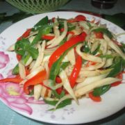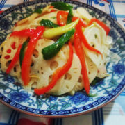 藕、青红椒、小米椒、葱、蒜、盐、白醋、味精。