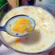 芒果、柑橘、纯牛奶、椰子汁、冰糖、白砂糖、西米。