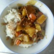 牛肉、胡萝卜、洋葱、土豆、葱姜蒜、咖喱块。