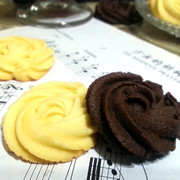 黄油、低筋粉、鸡蛋、抹茶粉、可可粉、香草精、糖粉。