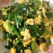 韭菜、鸡蛋、粉丝、干香菇、面粉、盐、五香粉、姜、油。