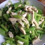 鸡腿、芹菜、香菜、蒜、姜、花椒粉、盐、麻油、醋、蒸鱼豉油。