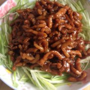 里脊肉四、大葱、姜、甜面酱、白糖、盐、白酒、生抽、淀粉。