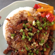 五花肉、香菇、洋葱、料酒、老抽、冰糖。