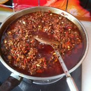 辣椒、黄豆酱、花生碎、肉丁、香菇丁、胡萝卜、大料、花椒粒、生姜、植物油。
