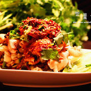 红薯粉、绿豆芽、芫荽、葱、蒜泥、花生米、白芝麻。