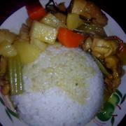 鸡腿、米饭、土豆、葱头、胡萝卜、芹菜、牛奶。