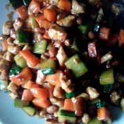 鸡胸肉、黄瓜、胡萝卜、豆瓣酱、鸡精、白糖、醋、酱油。