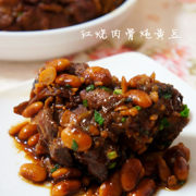 肉骨头、黄豆、葱、姜、盐、黄酒、白砂糖、味精、六月鲜酱油、李锦记秘制红烧汁、芥花油。